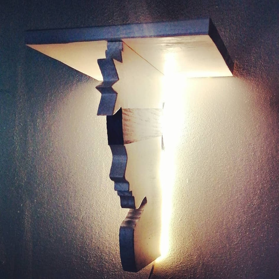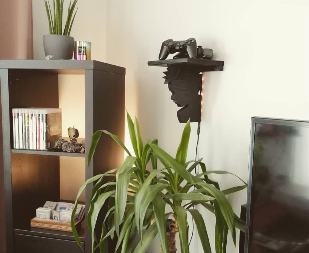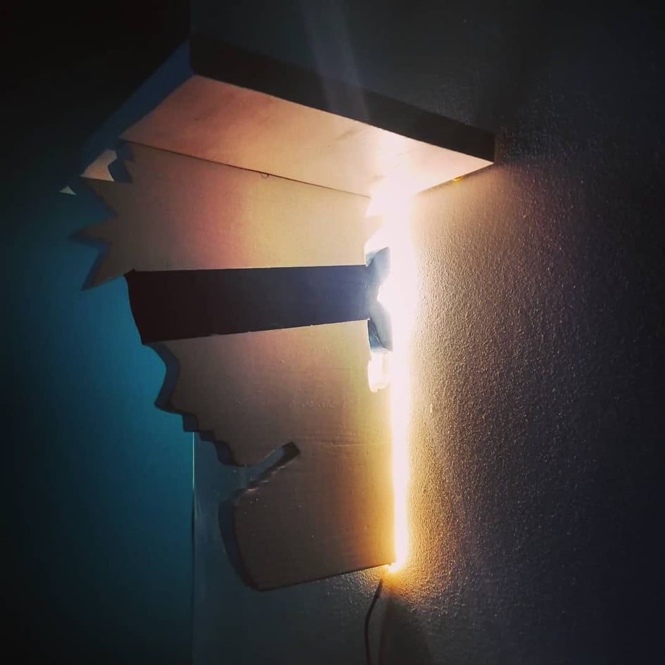 Etagère en pin avec découpe du visage de Naruto avec ruban LED, sur secteur/usb.